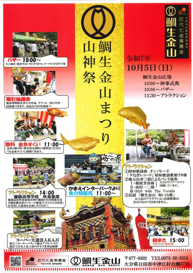 #鯛生金山 #鯛生金山まつり #山神祭 #大分イベント #日田市 #中津江村 #近代化産業遺産 #地底博物館 #秋祭り #10月イベント #大分観光 #家族でお出かけ #金魚すくい #餅まき #道の駅