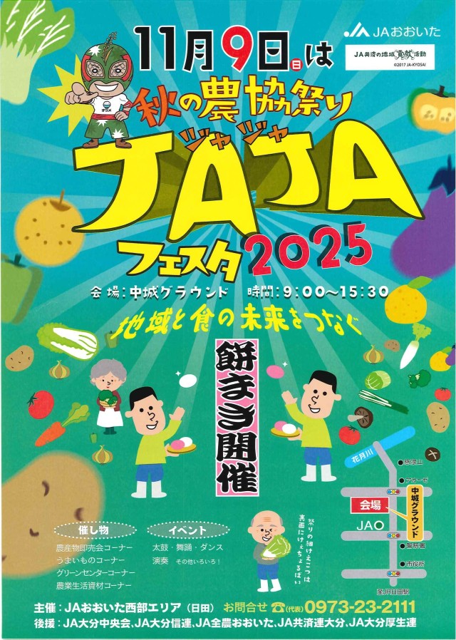 大分県日田市で開催される秋の農協祭り「JAJA(ジャジャ)フェスタ2025」が、いよいよ本日開催されます!