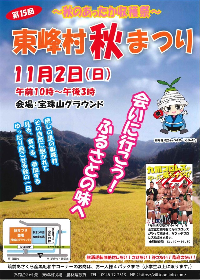 11月2日(日曜日)、東峰村の宝珠山グランドで「第15回 東峰村秋まつり」が開催されます。