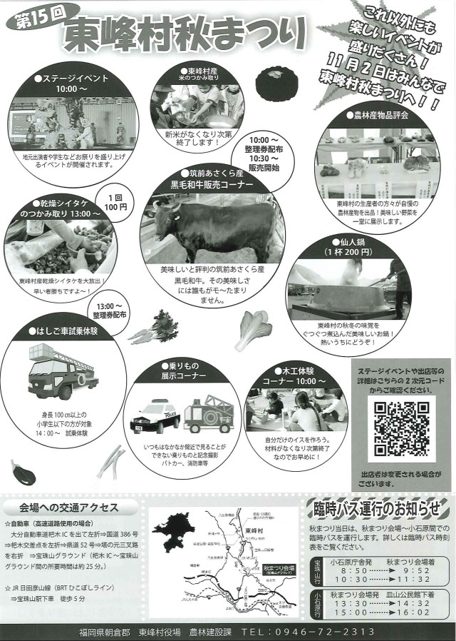 当日は秋まつり会場と小石原間で臨時バスが運行されます。