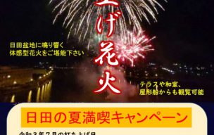 令和3年今年の打ち上げ花火のご案内です。当館のテラスや和室、特別室や河川敷で目の...